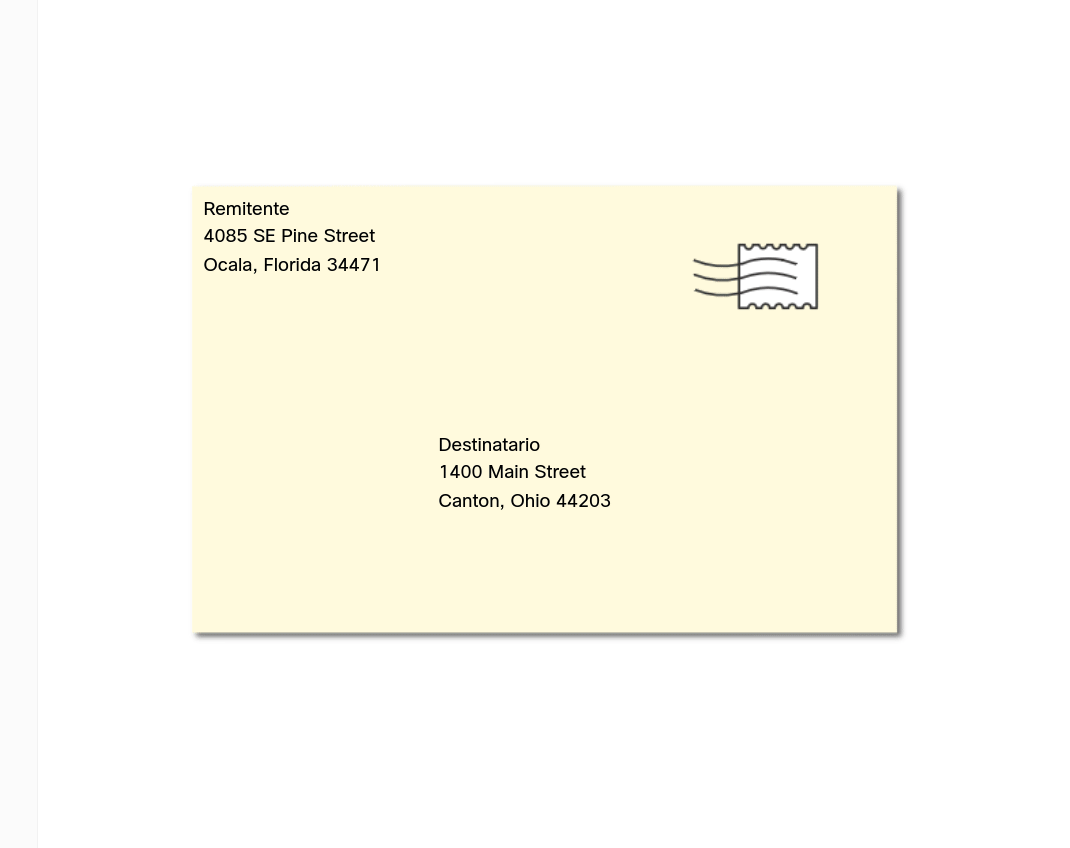 El sobre tiene la dirección del emisor y la del receptor, cada una escrita en el lugar adecuado del sobre. Si la dirección de destino y el formato no son correctos, la carta no se entrega.